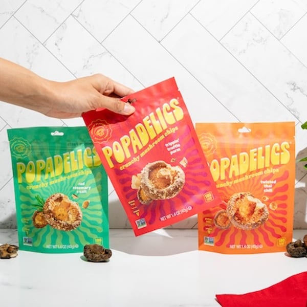 Popadelics Crunchy Mushroom Chips are shiitake mushrooms reimagined for the modern superfood snacker that bursts with flavor and packs an addictive crunch! Popadelics is currently available in three mouth-watering, culinary-inspired flavors — Trippin’ Truffle Parm, Twisted Thai Chili, and Rad Rosemary + Salt